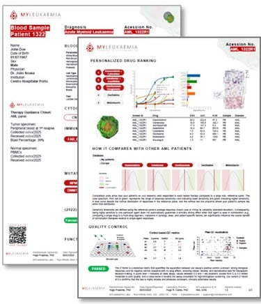 We challenge the blood cancer cells with 5 clinically used regimens, quantify Leukaemia cell response vs. healthy counterparts tolerance, and produce a tumour-board-ready heatmap that ranks most effective therapeutic options & flags QC. The result complements cytogenetics, flow, PCR and NGS, turning one-size fits all approach/trial-and-error into evidence-guided therapy selection.